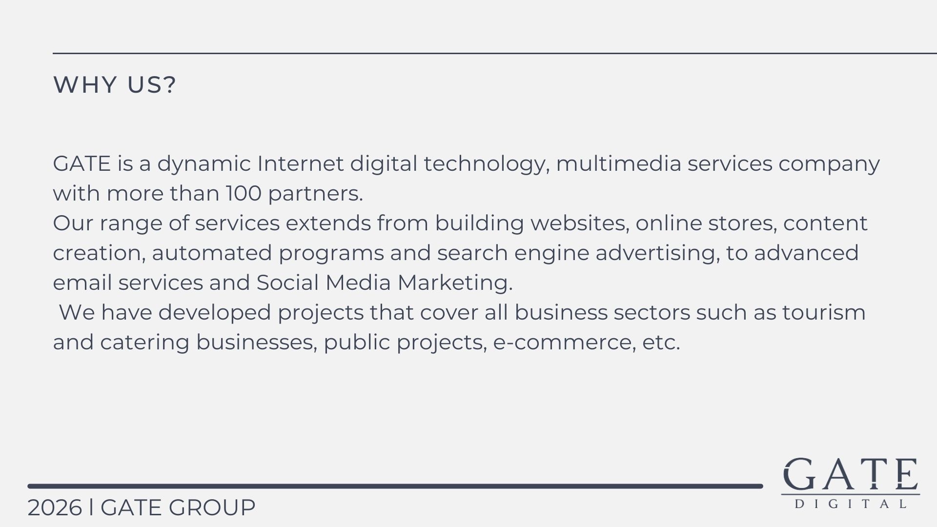 Η GATE Digital είναι μια δυναμική εταιρεία παροχής υπηρεσιών διαδικτύου & ψηφιακής τεχνολογίας.